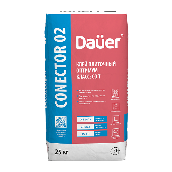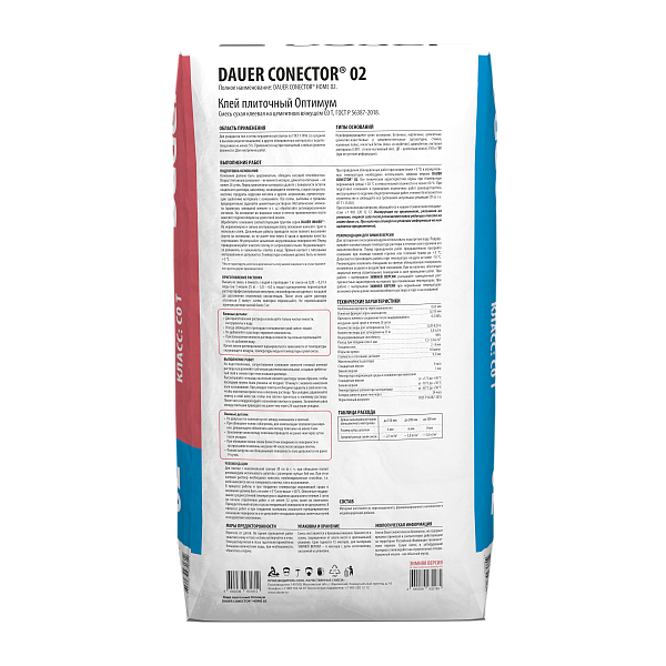 Плиточный клей: Dauer Conector® 02 Клей плиточный Оптимум, упаковка 25 кг
