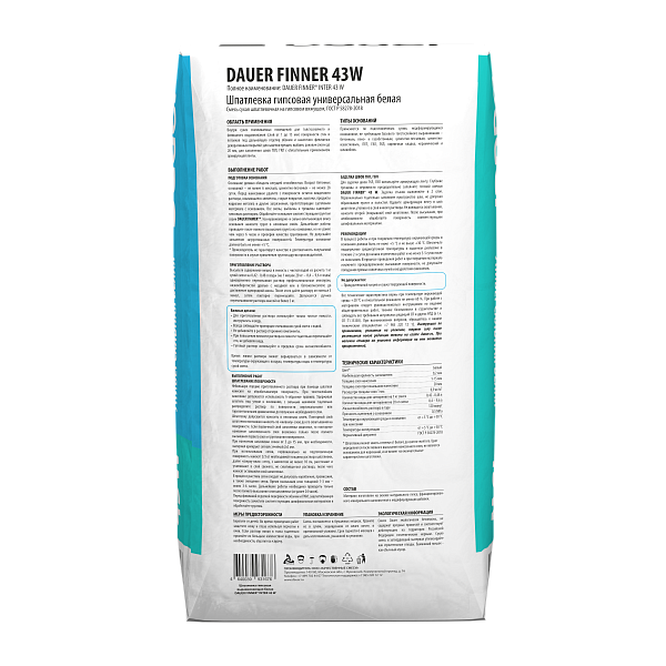 FINNER® INTER 43 W Шпатлевка гипсовая выравнивающая белая